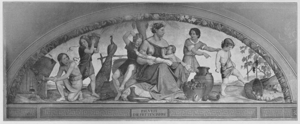 Keywords: Jahrhundertausstellung 1906 KatNr. 1864a.jpg Artwork Creator Philipp Veit Die sieben fetten Jahre Oil Canvas cm 150 480 Nationalgalerie Berlin lt Quelle Vorstand der Deutschen Jahrhundertausstellung Herausgeber žKatalog zur Ausstellung deutscher Kunst aus der Zeit von 1775 “1875 in der Königlichen Nationalgalerie Berlin Verlag F Bruckmann AG München 1906 2 Bände ; self scanned from own book 1816 und 1817 PD-old-70-1923 Other versions Philipp Veit Jahrhundertausstellung deutscher Kunst 1906 Lunette paintings ImageNote 1 18 9 2370 964 2397 994 2 Lünette in Fresko aus der Casa Bartholdi in Rom Die Frauengestalt in violettgrauem Gewand auf strohgelbem Getreide Die Knaben in rosa mattgrünen und hellblauen Gewändern Weißgrauer Grund “ 1816 und 1817 ImageNoteEnd 1