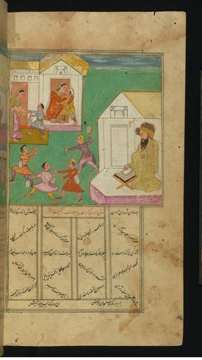 | Keywords: Jalal al-Din Rumi, Maulana - Misbehaving Students and their Supposedly Sick Teacher - Walters W626121B - Full Page.jpg  This folio from Walters manuscript W 626 depicts misbehaving students and their supposedly sick teacher islamic 1663 1073 ink and pigments on thin laid paper probably Kashmiri cm 26 5 15 accession number W 626 121B 83751 Ibrahim date and mode of acquisition unknown round seal impression Ibrahim on front flyleaf iia Henry Walters Baltimore date and mode of acquisition unknown Walters Art Museum Henry Walters Acquired by Henry Walters place of origin Bharat Walters Art Museum license 2D Manuscript by Rumi Walters MS 626 Media contributed by the Walters Art Museum needs category review Mischievous children in art |