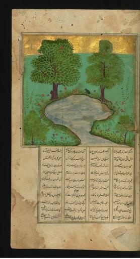 | Keywords: Jalal al-Din Rumi, Maulana - A Mouse and a Frog Near a Pond - Walters W626289A - Full Page.jpg  This folio from Walters manuscript W 626 depicts a mouse and a frog near a pond islamic 1663 1073 ink and pigments on thin laid paper probably Kashmiri cm 26 5 15 accession number W 626 289A 83776 Ibrahim date and mode of acquisition unknown round seal impression Ibrahim on front flyleaf iia Henry Walters Baltimore date and mode of acquisition unknown Walters Art Museum Henry Walters Acquired by Henry Walters place of origin Bharat Walters Art Museum license 2D Manuscript by Rumi Walters MS 626 Media contributed by the Walters Art Museum needs category review |