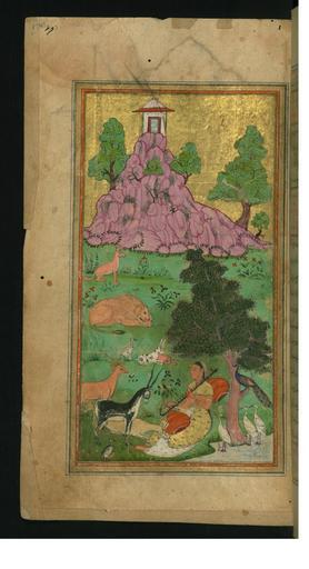 | Keywords: Jalal al-Din Rumi, Maulana - A Woman Plays a Stringed Instrument in the Company of Tamed Animals and Birds - Walters W626170A - Full Page.jpg  On this folio from Walters manuscript W 626 a woman plays a stringed instrument in the company of tamed animals and birds islamic 1663 1073 ink and pigments on thin laid paper probably Kashmiri cm 26 5 15 accession number W 626 170A 83759 Ibrahim date and mode of acquisition unknown round seal impression Ibrahim on front flyleaf iia Henry Walters Baltimore date and mode of acquisition unknown Walters Art Museum Henry Walters Acquired by Henry Walters place of origin Bharat Walters Art Museum license 2D Manuscript by Rumi Walters MS 626 Media contributed by the Walters Art Museum needs category review |