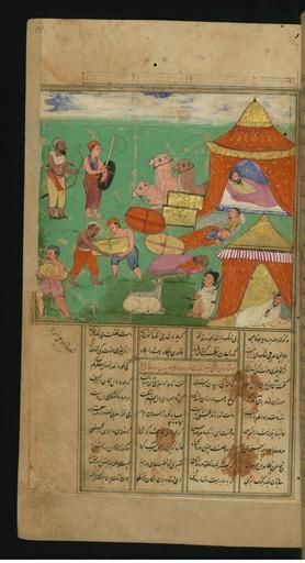 | Keywords: Jalal al-Din Rumi, Maulana - Thieves, Unhindered by Guards, Attack a Caravan While its Occupants Sleep - Walters W626177A - Full Page.jpg  On this folio from Walters manuscript W 626 thieves unhindered by guards attack a caravan while its occupants sleep islamic 1663 1073 ink and pigments on thin laid paper probably Kashmiri cm 26 5 15 accession number W 626 177A 83762 Ibrahim date and mode of acquisition unknown round seal impression Ibrahim on front flyleaf iia Henry Walters Baltimore date and mode of acquisition unknown Walters Art Museum Henry Walters Acquired by Henry Walters place of origin Bharat Walters Art Museum license 2D Manuscript by Rumi Walters MS 626 Media contributed by the Walters Art Museum needs category review |