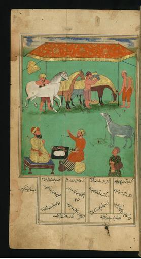 | Keywords: Jalal al-Din Rumi, Maulana - A Woodcutter?s Miserable Donkey who Envies the King?s Horses, Fed with Delicious Grain - Walters W626242A - Full Page.jpg  This folio from Walters manuscript W 626 depicts a woodcutter's miserable donkey who envies the king's horses fed with delicious grain islamic 1663 1073 ink and pigments on thin laid paper probably Kashmiri cm 26 5 15 accession number W 626 242A 83769 Ibrahim date and mode of acquisition unknown round seal impression Ibrahim on front flyleaf iia Henry Walters Baltimore date and mode of acquisition unknown Walters Art Museum Henry Walters Acquired by Henry Walters place of origin Bharat Walters Art Museum license 2D Manuscript by Rumi Walters MS 626 Media contributed by the Walters Art Museum needs category review Jalal al-Din Rumi, Maulana - A Woodcutter?s Miserable Donkey who Envies the King?s Horses, Fed with Delicious Grain - Walters W626242A - Full Page.jpg  This folio from Walters manuscript W 626 depicts a woodcutter's miserable donkey who envies the king's horses fed with delicious grain islamic 1663 1073 ink and pigments on thin laid paper probably Kashmiri cm 26 5 15 accession number W 626 242A 83769 Ibrahim date and mode of acquisition unknown round seal impression Ibrahim on front flyleaf iia Henry Walters Baltimore date and mode of acquisition unknown Walters Art Museum Henry Walters Acquired by Henry Walters place of origin Bharat Walters Art Museum license 2D Manuscript by Rumi Walters MS 626 Media contributed by the Walters Art Museum needs category review |