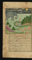 | Keywords: Jalal al-Din Rumi, Maulana - The King of the Elephants - Walters W626135A - Full Page.jpg  On this folio from Walters manuscript W 626 the king of the elephants comes to a pool of water in which is seen the reflection of the moon He tests the story of the leader of a band of hares in which the moon will supposedly be angry if the elephants come to drink from the pool islamic 1663 1073 ink and pigments on thin laid paper probably Kashmiri cm 26 5 15 accession number W 626 135A 83753 Ibrahim date and mode of acquisition unknown round seal impression Ibrahim on front flyleaf iia Henry Walters Baltimore date and mode of acquisition unknown Walters Art Museum Henry Walters Acquired by Henry Walters place of origin Bharat Walters Art Museum license 2D Manuscript by Rumi Walters MS 626 Media contributed by the Walters Art Museum needs category review |