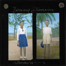 | Keywords: Jamaican Children, Jamaica, ca.1875-ca.1940 (imp-cswc-GB-237-CSWC47-LS11-056).jpg en <br> Jamaican Children Jamaica ca 1875-ca 1940 Young Jamaica Photograph of a young Jamaican boy and a young Jamaican girl Both are dressed in what is likely school uniform They are both photographed outdoors A body of water and a tree are visible behind the girl and railings and a wall behind the boy ; This belongs to a series of Church of Scotland Foreign Missions Committee lantern slides relating to Jamaica In 1800 the Scottish Missionary Society sent three missionaries to Jamaica Two died of yellow fever within weeks of arrival but the third became a pioneer missionary In 1824 a second venture travelled to Jamaica by invitation of local planters to instruct their slaves Scottish missionaries worked at Montego Bay in the 19th century and in 1836 the first presbytery of the Jamaican Church was constituted here Photographer Unknown Filename imp-cswc-GB-237-CSWC47-LS11-056 tif Coverage date circa 1875/1940 Part of collection International Mission Photography Archive ca 1860-ca 1960 Type images Part of subcollection Photographs from the Centre for the Study of World Christianity University of Edinburgh U K ca 1900-ca 1940s Repository name Centre for the Study of World Christianity Archival file impaunpub_Volume7/1831 url Repository address The University of Edinburgh School of Divinity New College Mound Place Edinburgh EH1 2LX United Kingdom Geographic subject country Jamaica Format aacr2 1 lantern slide 8 x 8 cm Geographic subject continent North and Central America Rights Contact the repository for details Part of series Jamaica LS11 Repository email divinity-CSWC ed ac uk Subject lcsh Keyword Children Date created circa 1875/1940 Publisher of the digital version University of Southern California Libraries Subject aat genre portraits Format aat lantern slides Legacy record ID impa-m69410 Access conditions http //www ed ac uk/schools-departments/divinity/research/centres/world-christianity/collections-resources File GB 237 CSWC47/LS11/56 circa 1875 /1940 date created author http //digitallibrary usc edu/cdm/ref/collection/p15799coll123/id/64947 PD-old-70-1923 Magic lantern images Images from USC Digital Library uploaded by Fæ International Mission Photography Archive ca 1860-ca 1960 |