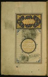 | Keywords: Jamal al-Din al-Tifashi - Illuminated Titlepiece and Medallion - Walters W5891A - Full Page.jpg This page from Walters manuscript W 589 has an illuminated titlepiece in the upper panel and an authorship statement in the central medallion islamic 1581 989 Ottoman ink pigments laid paper cm 23 5 14 5 accession number W 589 1A 79989 Grand Vizier 'Ali Pasha date and mode of acquisition unknown erased waqf seal with shelf mark 1830 or 8830 on fol 1a Henry Walters Baltimore date and mode of acquisition unknown Walters Art Museum Henry Walters Acquired by Henry Walters place of origin Syria Walters Art Museum license 2D Islamic manuscripts in the Walters Art Museum Media from the Walters Art Museum no creator template Media contributed by the Walters Art Museum needs category review |