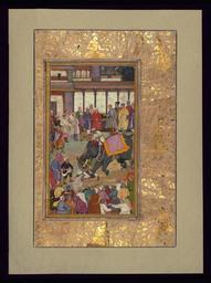 | Keywords: Jamal al-Din Husayn Inju Shirazi - Execution by Elephant - Walters W684AA - Full Page.jpg This folio from Walters manuscript W 684 depicts execution by elephant late 10th century AH/AD 16th century Mughal ink pigments paper Folio cm 34 5 22 5 ; Image cm 23 5 13 2 accession number W 684A A 77508 Demotte date and mode of acquisition unknown Henry Walters Baltimore date and mode of acquisition unknown Walters Art Museum Henry Walters Acquired by Henry Walters The Grand Mogul Imperial Painting in India 1600-1900 The Walters Art Gallery Baltimore; The Sterling and Francine Clark Art Institute Williamstown; Museum of Fine Arts Boston Boston; Asia House Gallery New York 1978-1979 Elephants The Walters Art Gallery Baltimore 1987-1988 place of origin India Walters Art Museum license 2D Media contributed by the Walters Art Museum needs artist review Executions in medieval art Akbarnamah by Abu'l-Fazl ibn Mubarak Walters MS 874 Elephants in Islamic art Mughal miniatures in the Walters Art Museum Execution by elephant Miniatures of elephants Elephant riding in art of India |