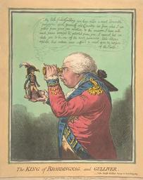 | Keywords: James Gillray The King of Brobdingnag and Gulliver.–Vide. Swift's Gulliver- Voyage to Brobdingnag The Metropolitan Museum of Art edit.jpg Brobdingnag and Gulliver Jonathan Swift's Gulliver's Travels Gilray reuses some of his stock characters; George III of the United Kingdom as the King of Brobdingnag and a miniscule General Napoleon in the role of Gulliver Restored from File The King of Brobdingnag and Gulliver “Vide Swift's Gulliver Voyage to Brobdingnag jpg water damage removed slightly straightened despecked 1803-06-26 etching aquatint Institution Metropolitan Museum of Art object history credit line Restored by ” Chris Woodrich talk 10 53 11 August 2015 UTC accession number Metropolitan Museum of Art online collection http //metmuseum org/collection/the-collection-online/search/391822 entry 391822 PD-old-auto-1923 1815 Image The king of Brobdingnag and Gulliver jpg Assessments 1 The King of Brobdingnag and Gulliver Etchings in the Metropolitan Museum of Art James Gillray Gulliver's Travels Caricatures of Napoleon I of France Caricatures of George III of the United Kingdom Restorations by Chris Woodrich Restorations by Chris Woodrich featured on the English Wikipedia |