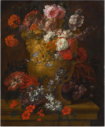| Keywords: Jan Baptist Bosschaert - Still life of flowers in a sculpted stone urn 2.jpg Artwork creator Jan Baptist Bosschaert en Still life of flowers in a sculpted stone urn 1713 http //www sothebys com/en/auctions/ecatalogue/2013/old-master-paintings-n08952/lot 259 html Oil on canvas cm 75 62 2 signed lower left JBosschaert f Auctioned at Sotheby's 31 January 2013 - 01 February 2013 in London lot 259 A pair Other versions PD-old-100 Jan Baptist Bosschaert 18th-century paintings in unidentified private collections 1713 oil on canvas paintings 1710s still-life paintings Vases in still-life paintings 18th-century still-life paintings of flowers |