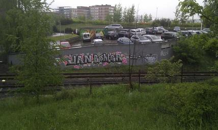 | Keywords: Jan Bøhler graffiti Mai 2016 Oslo Økern 2.jpg en Graffiti along the subway tracks between Økern and Risløkka at the entrance to Groruddalen Oslo no Jan Bøhler-graffiti på østsida av T-banesporet mellom Økern og Risløkka stasjon 2016-05-23 09 17 03 own Ida Tolgensbakk other versions cc-zero Graffiti in Oslo Subterranean rapid transit Rapid transit |