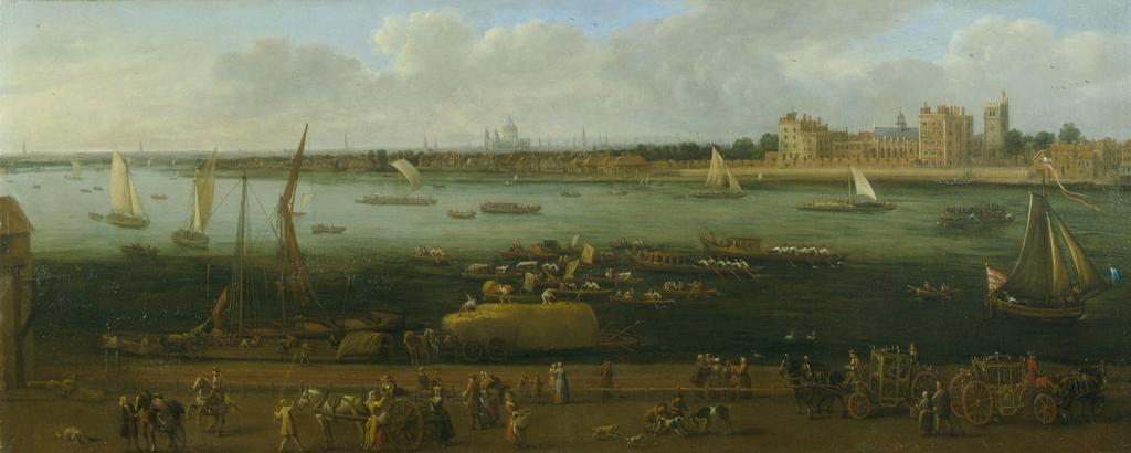 | Keywords: Jan Griffier - View of Lambeth Palace across Thames.jpg c 1709-1718 Creator Jan Griffier oil canvas cm 62 154 Private collection England object history Mr Wheatley Collection UK; With Ackermann Johnson London in 1970 Interestingly the picture depicts the horseferry which was used to ferry passengers as well as their horses and carriages between Westminster and Lambeth Palace See also <gallery>File Horseferry jpg Jan Griffier's Horseferry </gallery> PD-old-100 Jan Griffier Lambeth Palace Paintings of the Thames Paintings of London London in the 1710s Millbank London |