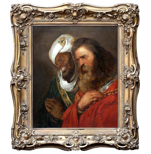 Keywords: Jan Lievens Saladin 1.jpg en Oil on canvas depicting Saladin ca 1138 ” 1193 holding Guy of Lusignan c 1150 “ 18 July 1194 captive in golden chains nl Olieverf op doek waarop Saladin ca 1138- 1193 en Guy van Lusignan ca 1150 “ 18 July 1194 zijn afgebeeld Saladin houdt Guy van Lusignan gevangen in gouden kettingen private collection Jan Lievens 1607-1674 century 17 Cc-zero Paintings by Jan Lievens |