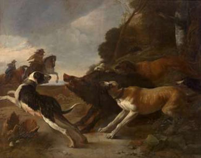 Keywords: Jan van Ossenbeeck - Lov na merjasca (sr. 17. st.).jpg Boar hunting middle other date century 17 oil canvas cm 148 5 185 Institution National Museum of Slovenia http //www nms si/index php option com_content view category layout blog id 81 Itemid 27 lang en Zbirka slik Narodnega muzeja Slovenije PD-old-100 Paintings from the Netherlands 17th-century paintings in the National Museum of Slovenia 17th-century oil on canvas paintings in Slovenia 17th-century landscape paintings in Slovenia Paintings of animals in Slovenia Paintings of hunting Boar hunting in art |