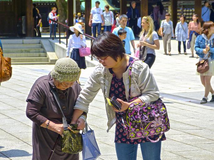 Keywords: japan japanese people tokyo tourists harajuku old lady