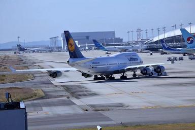 Keywords: japan osaka kansai international airport airplane aircraft landscape blue sky boeing 747