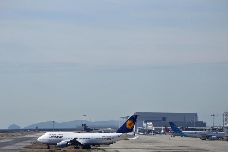 Keywords: japan osaka kansai international airport airplane aircraft landscape blue sky boeing 747