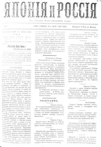 Keywords: Japan and Russia 1905 newspaper.jpg en Japan and Russia 1905-1906 newspaper ru «Японiя и Россiя» «Япония и Россия» еженедельная иллюст и ованная газета выходившая в 1905 1906 гг в Японии для усских военнопленных 1905-07-08 Газета «Японiя и Россiя» «Япония и Россия» еженедельная иллюст и ованная газета выходившая в 1905 1906 гг в Японии для усских военнопленных едакто газеты Цудзи Ивао 辻岩雄 фото - Niklitov PD-Japan other versions PD-100 Uploaded with UploadWizard Newspapers to be categorised by year Former newspapers Newspapers of Japan 1905 Newspapers of Japan 1906 Russo-Japanese War Newspaper covers Newspaper logos Newspapers by country by name Newspapers of Japan Documents of Japan 1905 newspapers 1906 newspapers Journalism in Japan Companies based in Kobe Newspapers in Russian Newspapers of Japan in Russian 8 July