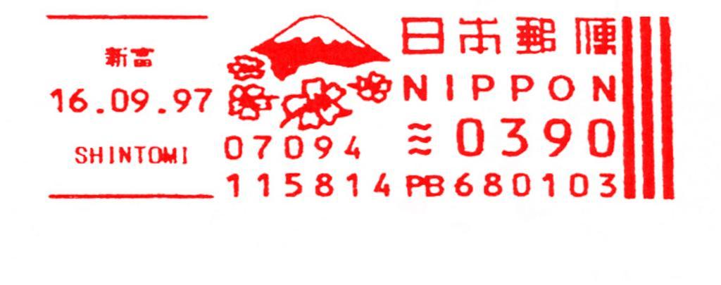 Keywords: Japan stamp type FD1.jpg en Meter stamp catalog image Japan type FD1 Richard Stambaugh Richard Stambaugh 2011-10-24 Meter stamps of Japan