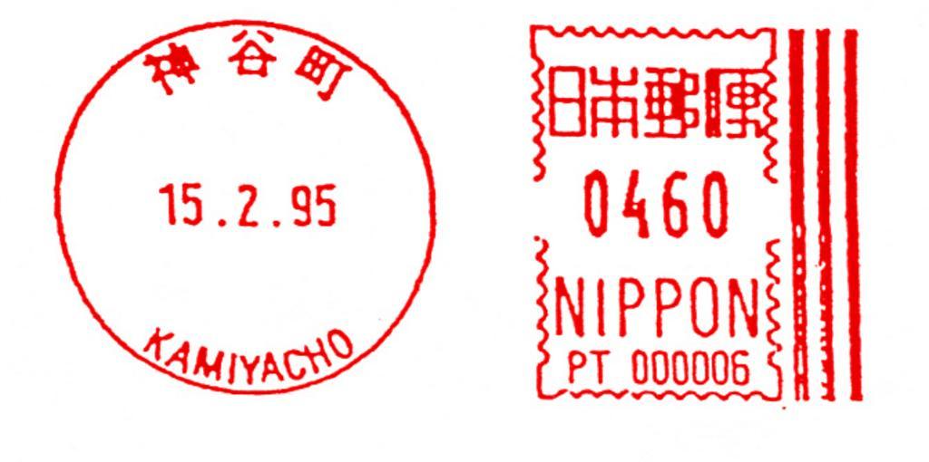Keywords: Japan stamp type H5.jpg en Meter stamp catalog image Japan type H5 Richard Stambaugh Richard Stambaugh 2011-10-24 Meter stamps of Japan