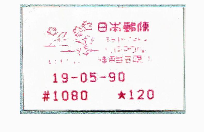 Keywords: Japan stamp type PV5.jpg en Meter stamp catalog image Japan type PV5 Richard Stambaugh Richard Stambaugh 2011-10-24 Meter stamps of Japan
