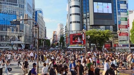 Keywords: japan tokyo shibuya japanese building crowd people shopping road junction mall traffic lights tourist attraction