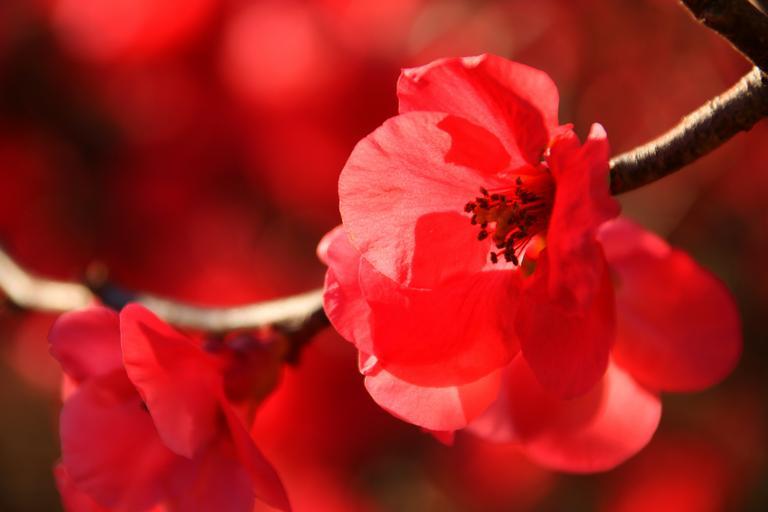 Keywords: japanese flowering crabapple winter sun nature outdoor forest blossom flower tree trail red