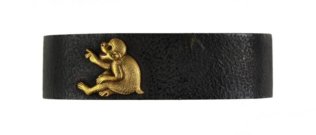 | Keywords: Japanese - Fuchi with Monkeys - Walters 51916 - Back.jpg Three monkeys are depicted in gold copper and shakudo One monkey is dressed in a shirt and holds a stick with sacred shide papers attached Such sticks are used to symbolize purification in Shinto ritual This fuchi is part of a set with Walters 51 917 date shakudo copper gold cm 3 9 accession number 51 916 13218 William T / Henry Walters Collection Baltimore date and mode of acquisition unknown Walters Art Museum Henry Walters Acquired by William T or Henry Walters none place of origin Japan Walters Art Museum license Fuchi in the Walters Art Museum Fuchi Reliefs of monkeys on Japanese sword fittings ShakudÅ |