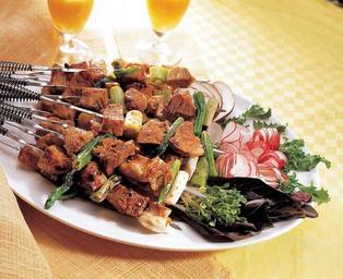 Keywords: skewers satay pork korean bbq onion dish stick meal barbecue platter plate oriental spring yakitori yakitori-ya lime negima kebab indonesian chicken chilli traditional kushiyaki chopsticks thai bacon grilled butabara