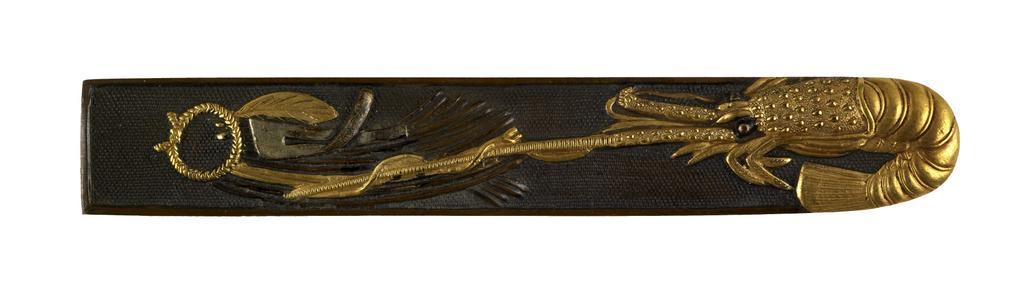 | Keywords: Japanese - Kozuka with New Year's Decorations - Walters 51689.jpg The objects shown on this kozuka are traditional New Year's decorations The lobster which forms the end of the kozuka is a sign of longevity because it is bent like the back of a elderly person century 19 late Edo-Meiji shakudo gold copper cm 9 5 l accession number 51 689 11455 Henry Walters Baltimore date and mode of acquisition unknown Walters Art Museum Henry Walters Acquired by Henry Walters none place of origin Japan Walters Art Museum license Kozuka in the Walters Art Museum Media contributed by the Walters Art Museum needs category review |