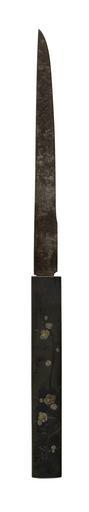 Keywords: Japanese - Kozuka with Plum Blossoms - Walters 5111713.jpg A branch of plum blossoms decorates the front of the kozuka Plum blossoms are the first flowers of spring to bloom This is part of a mounted set century 18 Edo shakudo silver gold steel cm 21 7 accession number 51 1171 3 5127 William T / Henry Walters Collection Baltimore date and mode of acquisition unknown Walters Art Museum Henry Walters Acquired by William T or Henry Walters Signature On blade fujiwara kunitsugu ise; Translation Fujiwara Kunitsugu of Ise place of origin Japan Walters Art Museum license Kozuka in the Walters Art Museum Media contributed by the Walters Art Museum needs category review |