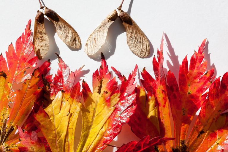 Keywords: japanese maple maple leaves leaves hebrst autumn colours maple colorful color red yellow orange green dye anthocyanin autumn background seeds