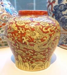 | Keywords: Jar with dragons amid clouds, China, Jingdezhen, Jiangxi province, Ming dynasty, Jiajing emperor, porcelain with overglaze multicolor - Asian Art Museum of San Francisco - DSC01381.JPG en Exhibit in the Asian Art Museum of San Francisco San Francisco California USA This artwork is in the public domain because the artist died more than 70 years ago Photography was permitted in the museum without restriction 2013-11-05 20 17 50 own Daderot other versions cc-zero Porcelain jars baluster Baluster-shaped jars porcelain Jingdezhen porcelain in the Asian Art Museum of San Francisco Uploaded with UploadWizard |
