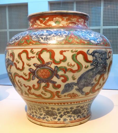 Keywords: Jar with lions playing with a ball, China, Jingdezhen, Jiangxi province, Ming dynasty, Zhengde emperor, porcelain with underglaze blue and overglaze multicolor - Asian Art Museum of San Francisco - DSC01382.JPG en Exhibit in the Asian Art Museum of San Francisco San Francisco California USA This artwork is in the public domain because the artist died more than 70 years ago Photography was permitted in the museum without restriction 2013-11-05 20 18 03 own Daderot other versions cc-zero Porcelain jars baluster Baluster-shaped jars porcelain Jingdezhen porcelain in the Asian Art Museum of San Francisco Uploaded with UploadWizard |