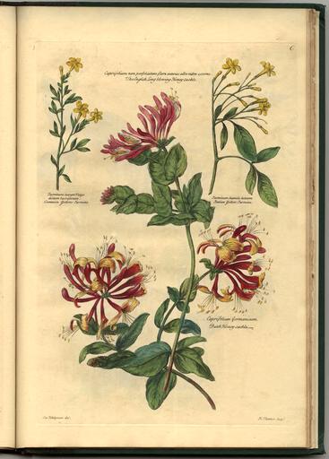| Keywords: catalogus plantarum catalogusplantarum plantarum catalogus catalogue honeysuckle dutch honeysuckle dutchhoneysuckle jasmine vines fragrant scent jasminum caprifolium lonicera periclymenum lonicerapericlymenum lonicera illustration botanical botanical illustration botanicalillustration 18th century 18thcentury engraving engraved hand-colored handcolored plate english society of gardeners societyofgardeners gardeners miller london english honeysuckle englishhoneysuckle drawing photo border Hand-colored engraved plate. Miller, Philip, 1691-1771 , A Catalogue of trees, shrubs, plants, and flowers, both exotic and domestic, which are propagated for sale, in the gardens near London :divided, accorded to their different degrees of hardiness, into particular books, or parts; in each of which the plants are ranged in an alphabetical order. by a Society of Gardeners (c1730) -or Catalogus Plantarum :tum exotiarum tum domesticarum, quae in hortis haud procul a Londino sitis in venditionem propagantur. One of the first flower books to include color plates. From the Swallowtail Garden Seeds collection of botanical photographs and illustrations. We hope you will enjoy these images as much as we do. Hand-colored engraved plate. Miller, Philip, 1691-1771 , A Catalogue of trees, shrubs, plants, and flowers, both exotic and domestic, which are propagated for sale, in the gardens near London :divided, accorded to their different degrees of hardiness, into particular books, or parts; in each of which the plants are ranged in an alphabetical order. by a Society of Gardeners (c1730) -or Catalogus Plantarum :tum exotiarum tum domesticarum, quae in hortis haud procul a Londino sitis in venditionem propagantur. One of the first flower books to include color plates. From the Swallowtail Garden Seeds collection of botanical photographs and illustrations. We hope you will enjoy these images as much as we do. |