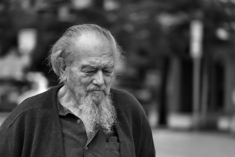 Keywords: blackandwhite black white monochrome bw man male person elderly old beard jaywalking summer contrasts canada bc britishcolumbia okanagan kelowna street streetphotography