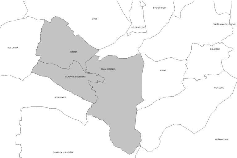 Keywords: JE Jeseník.png cs Katastrální členění Jeseníku own JAn Dudík Jeseník Cadastral maps of the Jeseník District