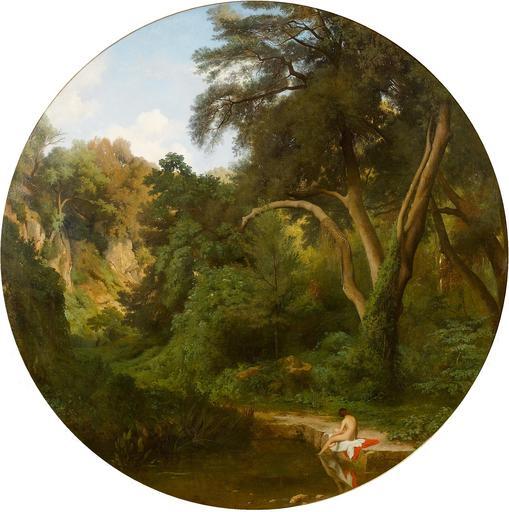 Keywords: Jean-Achille Benouville - Baigneuses dans une forêt.jpg Artwork Creator Jean-Achille Benouville 1846 oil canvas cm 140 138 tondo object history PROVENANCE Acquired by the Grandfather of the present owner credit line signed and dated 'Ach Benouville/Rome 1846' lower right accession number http //www bonhams com/auctions/11363/lot/80/ Bonhams PD-Art-100 Jean-Achille Benouville Portrait paintings of women Bathing in art Landscape paintings of Italy Images from Bonhams 1840s landscape paintings