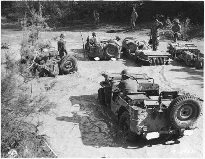 | Keywords: Jeeps crossing rain swollen stream in Italy - NARA - 292563.jpg Scope and content Photo shows vehicles crossing rain swollen stream A few minutes before the rain the stream was only a few inches deep Fifth Army Volterra Sector Italy July 9 1944 General notes 292563 Local identifier Department of Defense Department of the Army Fort Leavenworth Kansas 09/18/1947 - NARA's Central Plains Region Kansas City NREA 400 West Pershing Road Kansas City MO 64108 1944 Record group Record Group 338 Records of U S Army Operational Tactical and Support Organizations World War II and Thereafter 1917 - 1999 Record group ARC 651 Ft Leavenworth Signal Corps Photograph Collection Equipment File compiled 1939 - 1965 Series ARC 292562 File unit File unit ARC Variant control numbers NAIL Control Number NRE-338-FTL EF -205 1 Other versions <gallery> File Jeeps_crossing_rain_swollen_stream_in_Italy_-_NARA_-_292563 tif tif File Jeeps_crossing_rain_swollen_stream_in_Italy_-_NARA_-_292563 jpg jpg </gallery> NARA-cooperation PD-USGov Italian Campaign World War II Willys MB during World War II History of Volterra Fording water obstacles |