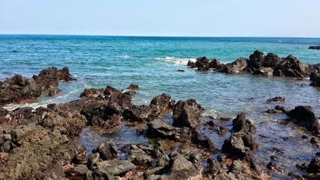 Keywords: jeju sea summer sea side water sea-side beach stone sky waves