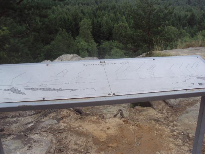 Keywords: Jelení skok 2.JPG cs Na plošině je deska s obrysy okolních kopců own Zákupák 2013-06-28 Jelení skok Nový Bor