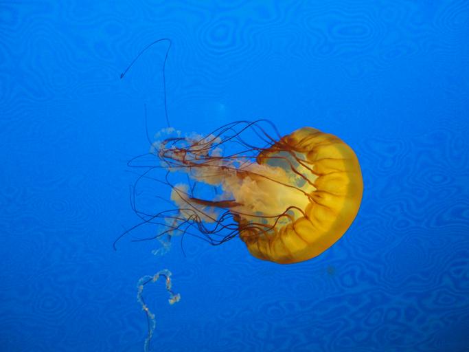 Keywords: jellyfish blue marine animal jellies float underwater sea life aquarium nature