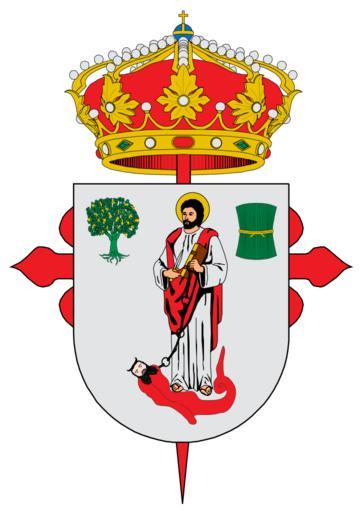 | Keywords: Jerez de los Caballeros.svg es Escudo del municipio de Jerez de los Caballeros en la provincia de Badajoz España Descripción Trae por armas el escudo de Jerez de los Caballeros en campo de plata un santo en carnación nimbado de oro portando un cuchillo de plata en la mano diestra y un libro de su color en la siniestra sostenido por un demonio en carnación tendido a sus pies prisionero por el cuello con una cadena de sable acompañada en el cantón diestro del jefe por una encina de sinople englandada de oro y en siniestro del jefe por un manojo de jara de sinople atado con una cinta de oro; seacola con una cruz de la Orden de Santiago y se timbra con una Corona Real cerrada D O E núm 71 de 22 de junio de 2004 Fuente Enciclopedia de Heráldica Municipal Provincia de Badajoz www hextremadura com own Abraham Vázquez 2011-02-05 File Coat of Arms of Jerez de los Caballeros svg Cc-zero Coats of arms of municipalities of the province of Badajoz |