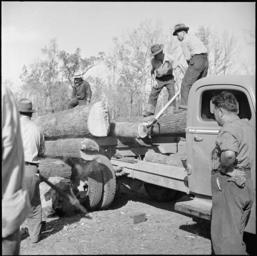 | Keywords: Jerome Relocation Center, Denson, Arkansas. Unloading cut timber at sawmill. Logs are hardwood oak . . . - NARA - 538821.tif Scope and content The full caption for this photograph reads Jerome Relocation Center Denson Arkansas Unloading cut timber at sawmill Logs are hardwood oak birch gum cypress and hard pine General notes 538821 Local identifier 210-G-E228 Department of the Interior War Relocation Authority 02/16/1944 - 06/30/1946 NARA-Author Parker Tom Photographer 4682167 <br /> Still Picture Records Section Special Media Archives Services Division NWCS-S National Archives at College Park 8601 Adelphi Road College Park MD 20740-6001 1942-11-18 Record group Record Group 210 Records of the War Relocation Authority 1941 - 1989 Record group ARC 537 Central Photographic File of the War Relocation Authority compiled 1942 - 1945 Series ARC 536000 File unit File unit ARC Variant control numbers NAIL Control Number NWDNS-210-G-E228 yes Other versions <gallery> File Jerome_Relocation_Center _Denson _Arkansas _Unloading_cut_timber_at_sawmill _Logs_are_hardwood_oak_ _ _ _-_NARA_-_538821 tif tif File Jerome_Relocation_Center _Denson _Arkansas _Unloading_cut_timber_at_sawmill _Logs_are_hardwood_oak_ _ _ _-_NARA_-_538821 jpg jpg </gallery> NARA-cooperation PD-USGov Timber in the United States Transport of timber in the United States NARA TIF images with categorized JPGs |
