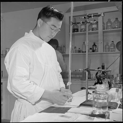 | Keywords: Jerome Relocation Center, Denson, Arkansas. Tom Arase, former California Bio-Chemistry student, per . . . - NARA - 539317.jpg Scope and content The full caption for this photograph reads Jerome Relocation Center Denson Arkansas Tom Arase former California Bio-Chemistry student performs a gastro analysis in the center hospital laboratory General notes 539317 Local identifier 210-G-E787 Department of the Interior War Relocation Authority 02/16/1944 - 06/30/1946 NARA-Author Parker Tom Photographer 4682167 <br /> Still Picture Records Section Special Media Archives Services Division NWCS-S National Archives at College Park 8601 Adelphi Road College Park MD 20740-6001 1943-03-11 Record group Record Group 210 Records of the War Relocation Authority 1941 - 1989 Record group ARC 537 Central Photographic File of the War Relocation Authority compiled 1942 - 1945 Series ARC 536000 File unit File unit ARC Variant control numbers NAIL Control Number NWDNS-210-G-E787 Other versions <gallery> File Jerome_Relocation_Center _Denson _Arkansas _Tom_Arase _former_California_Bio-Chemistry_student _per_ _ _ _-_NARA_-_539317 tif tif File Jerome_Relocation_Center _Denson _Arkansas _Tom_Arase _former_California_Bio-Chemistry_student _per_ _ _ _-_NARA_-_539317 jpg jpg </gallery> NARA-cooperation PD-USGov Jerome War Relocation Center Chem Men at work in the United States Lab People of Arkansas Male NARA images of Arkansas Chem 1943 in Arkansas Jerome |