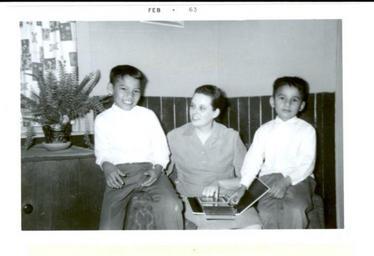 Keywords: doris lauterbach dorislauterbach jerry moyan jerrymoyan freddy moyan freddymoyan mennonite board of missions mennonite mission network voluntary service alberta marlboro mennoniteboardofmissionsmennonitemissionnetworkvoluntaryservicealbertamarlboro groupshot people photo border Caption: Marlboro, Alberta. The Moyan boys, Jerry and Freddy, pay a visit to the teacherage and chat with Doris Lauterbach. Citation: Mennonite Board of Missions. Photographs. Marlboro, Alberta Voluntary Service. 1963. IV-10-7.2 Box 1 Folder 20 Photo 4. Mennonite Church USA Archives - Goshen. Goshen, Indiana. Caption: Marlboro, Alberta. The Moyan boys, Jerry and Freddy, pay a visit to the teacherage and chat with Doris Lauterbach. Citation: Mennonite Board of Missions. Photographs. Marlboro, Alberta Voluntary Service. 1963. IV-10-7.2 Box 1 Folder 20 Photo 4. Mennonite Church USA Archives - Goshen. Goshen, Indiana. |