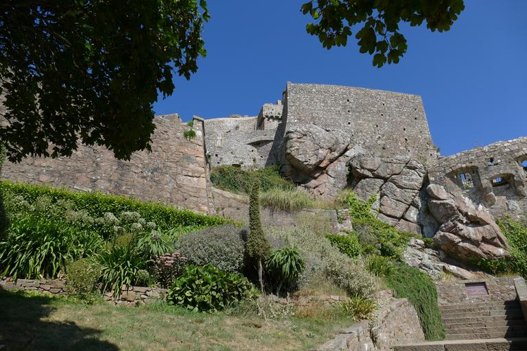 Keywords: jersey castle orgueil port island of jersey gorey historically fortress united kingdom england channel islands outlook view substantiate mountain building