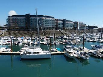 Keywords: jersey st helier capital channel islands england united kingdom island island of jersey view outlook city atlantic sail sailing vessel hotel tourism boot port