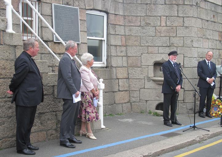 | Keywords: Jersey WWII 28 June 1940 bombing commemoration 2013 08.jpg 28 d'Juîn 2013 En mémouaithe d'la bombardéthie Allemande du 28 d'Juîn 1940 et des victînmes Saint Hélyi Jèrri 28 June 2013 Anniversary commemoration of the German bombardment of 28 June 1940 - and of the victims Saint Helier harbour Jersey own photo 2013-06-28 17 28 28 Man vyi ImageNote 1 786 51 483 650 3419 2423 2 On the evening of 28th June 1940 Heinkel Aircraft of the German Air Force attacked the St Helier Harbour in an attempt to test the defences of the Island this plaque was unveiled on 28th June 1990 in memory of Mr John Philip Mauger Mr Harold Frederick Hobbs Mr Robert Bunting Fallis Mr Godfray William Adolph Coleman Mr Leslie Charles Henry Bryan Mr Edward Henry Ferrand Mr William Charles Moody Mr Arthur William Parr who lost their lives as a result of this raid ImageNoteEnd 1 Commemoration of 28 June 1940 German attack against Jersey Memorial wreaths Stairs in Jersey Simon Crowcroft People of Jersey in 2013 John Nettles June 2013 in Jersey Albert Pier Jersey 2013 in Saint Helier Jersey Plaques in Saint Helier Jersey |