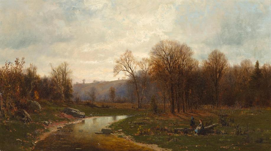 Keywords: Jervis McEntee - Figures by a river in an autumnal landscape (1867).jpg Artwork Creator Jervis McEntee 1867 oil canvas in 16 125 28 125 accession number object history credit line exhibition history JME 1867 ~ lr monogram / date http //www bonhams com/auctions/19991/lot/32/ Bonhams New York 15 May 2012 lot 32 PD-old-auto-1923 1891 DEFAULTSORT Macentee Jervis; Landscap 1867; Bonhams 2012 Jervis McEntee 1860s landscape paintings Landscape paintings Catskill Mountains in art Images from Bonhams