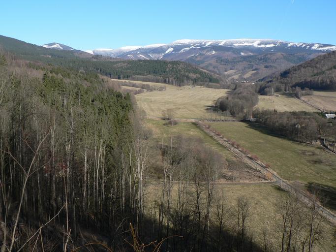 | Keywords: JesenikyHrebenJizni.jpg cs Jižní hřeben Hrubého Jeseníku z vyhlídky nad Sobotínem Úplně vlevo vrchol Homole za ním zasněžené vrcholy zleva Vysoká Hole Velký Máj Jelení hřbet a Břidličná s táhlým hřebenem k Pecnému a Ztraceným kamenům pyramida na konci hřebene Own Martin Vavřík 6 3 2008 Hrubý Jeseník |