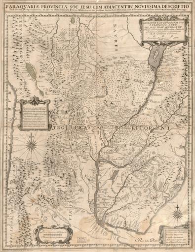 | Keywords: Jesuit Province Paraguay 1732 map.png en Map 66 x 52 cm in Latin with some place names in Spanish showing the Jesuit province of Paraguay and neighbouring areas with the main missions and missionary journeys The map was made in Rome by Giovanni Petroschi 1715-66 and is dedicated to Francisco Retz 1673-1750 Superior General of the Society of Jesus la Paraguariæ Provinciæ soc jesu cum adiacentibg novissima descriptio post iteratas peregrinationes plures observationes patrum missionariorum eiusdem soc tum huius provinciæ cum Peruanæ accuratissime delineata emendata ann 1732 / admodum r in cht o patri suo P Francisco Retz soc jesu præp generali XV hanc terrarum filiorum suorum sudore et sanguine excultarum et rigatarum tabulam ; D D D provincia paraquariæ soc jesu anno 1732 ; Ioannes Petroschi sculp Romæ sup perm ann 1732 Library of Congress Geography and Map Division Washington D C 20540-4650 USA http //memory loc gov/cgi-bin/query/r ammem/gmd field NUMBER+ band g5200+br000088 Giovanni Petroschi 1732 PD-old-100 Old maps of Paraguay Old maps of Uruguay Jesuit Missions 1732 Jesuit Reductions Jesuit Missions of the Chiquitos Old maps of Bolivia |